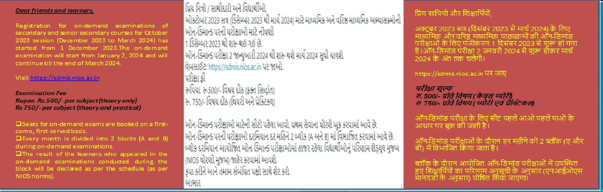 The National Institute of Open Schooling (NIOS) theory 10th and 12th examination will start on April 6 and end on May 22, 2024. Visit NIOS official website- https://www.nios.ac.in